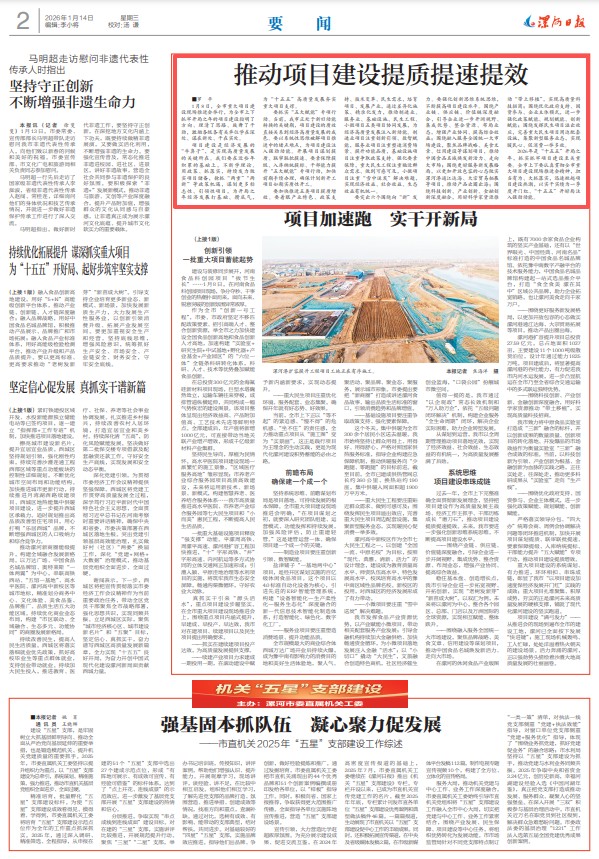 2026年是“十五五”開局之年,抓實(shí)抓牢項(xiàng)目建設(shè)至關(guān)重要。全市上下要認(rèn)真貫徹全市重大項(xiàng)目建設(shè)現(xiàn)場推進(jìn)會精神,擔(dān)當(dāng)有為、大抓落實(shí),迅速掀起項(xiàng)目建設(shè)熱潮,以實(shí)干實(shí)績?yōu)橐患径乳_門紅、“十五五”開好局注入強(qiáng)勁動能。